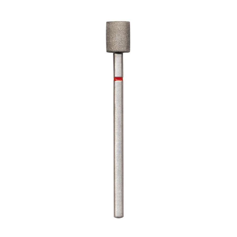 Fresa diamantata, con la punta a cilindro, in grana fine (30-50 ?m) e l’anello rosso.