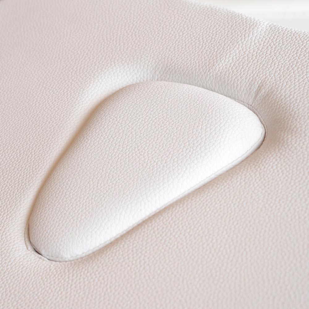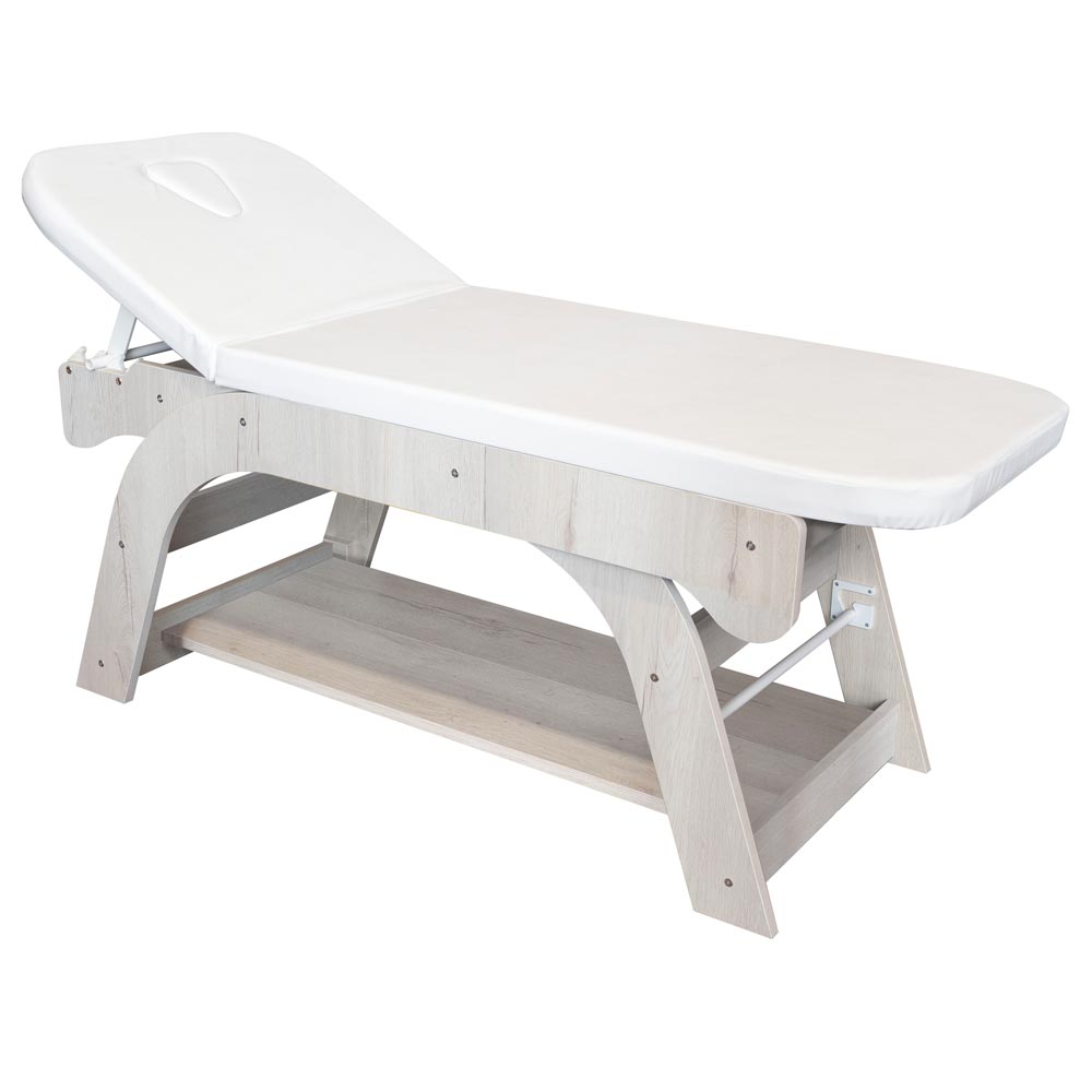 Ampio piano d’appoggio inferiore. Materasso ad alta densità per una sensazione di massimo comfort con foro facciale. Testiera regolabile manualmente.Fornito di portarotolo. Portata max 200 kg.