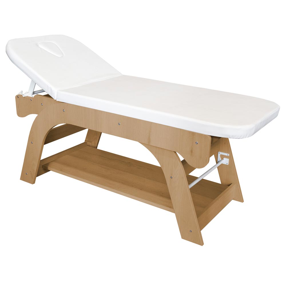 Ampio piano d’appoggio inferiore. Materasso ad alta densità per una sensazione di massimo comfort con foro facciale. Testiera regolabile manualmente.Fornito di portarotolo. Portata max 200 kg.