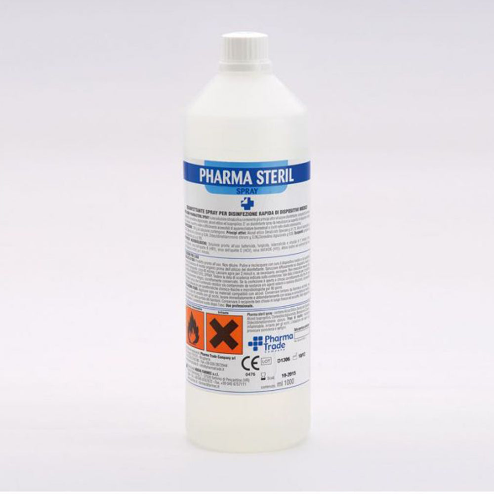 Disinfettante pronto all’uso per piani di lavoro, apparati elettromedicali, riuniti odontoiatrici, fruste e turbine a base di un’associazione fra clorexidina e 2 sali quaternari di ammonio in soluzione di alcool etilico e propilico.