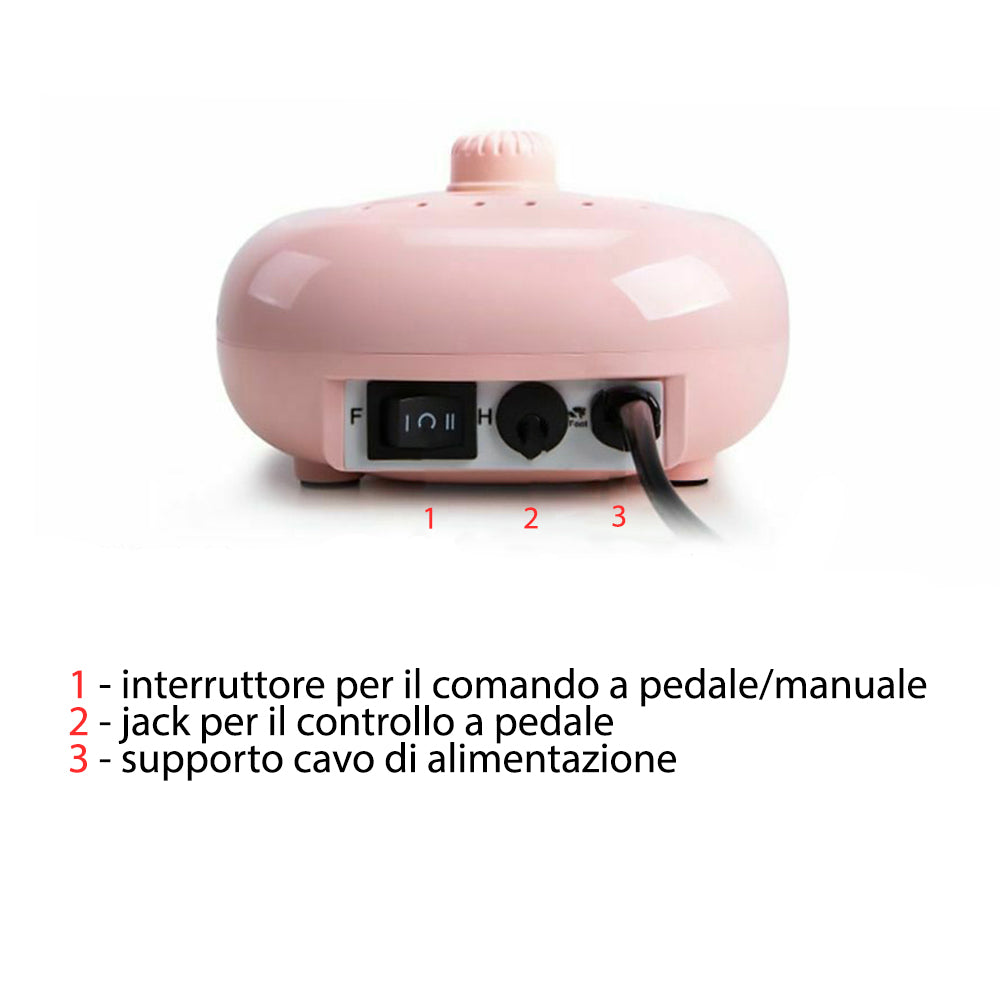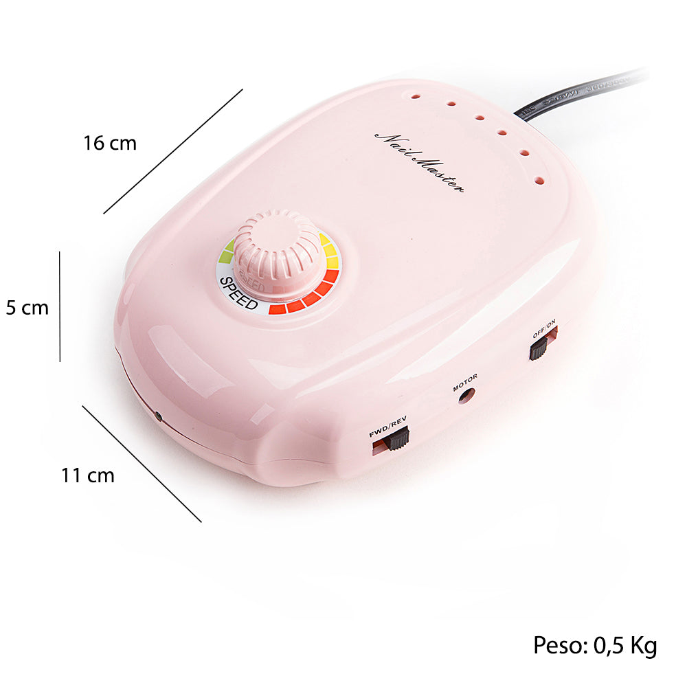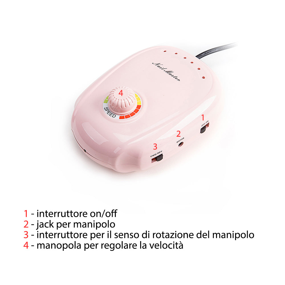 Micromotore con set di utensili per la limatura e decorazione delle unghie.