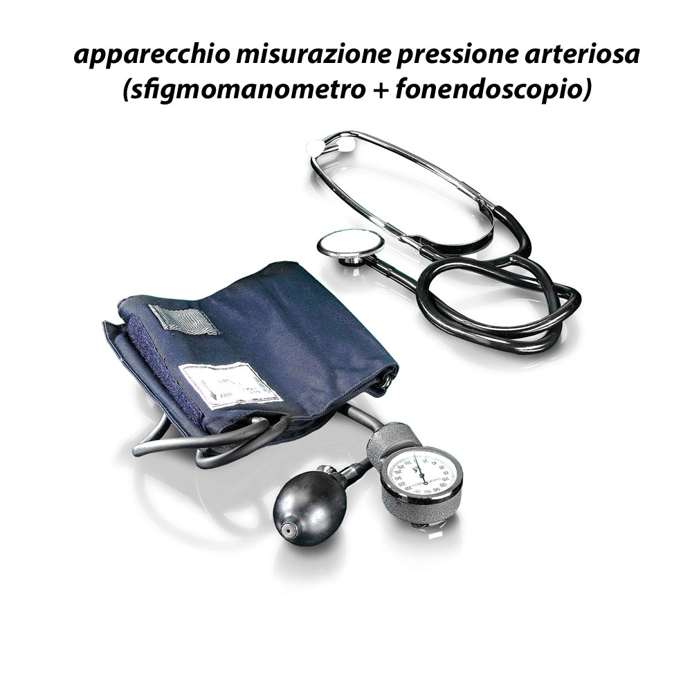 1 X apparecchio misurazione pressione arteriosa ( sfigmomanometro + fonendoscopio);